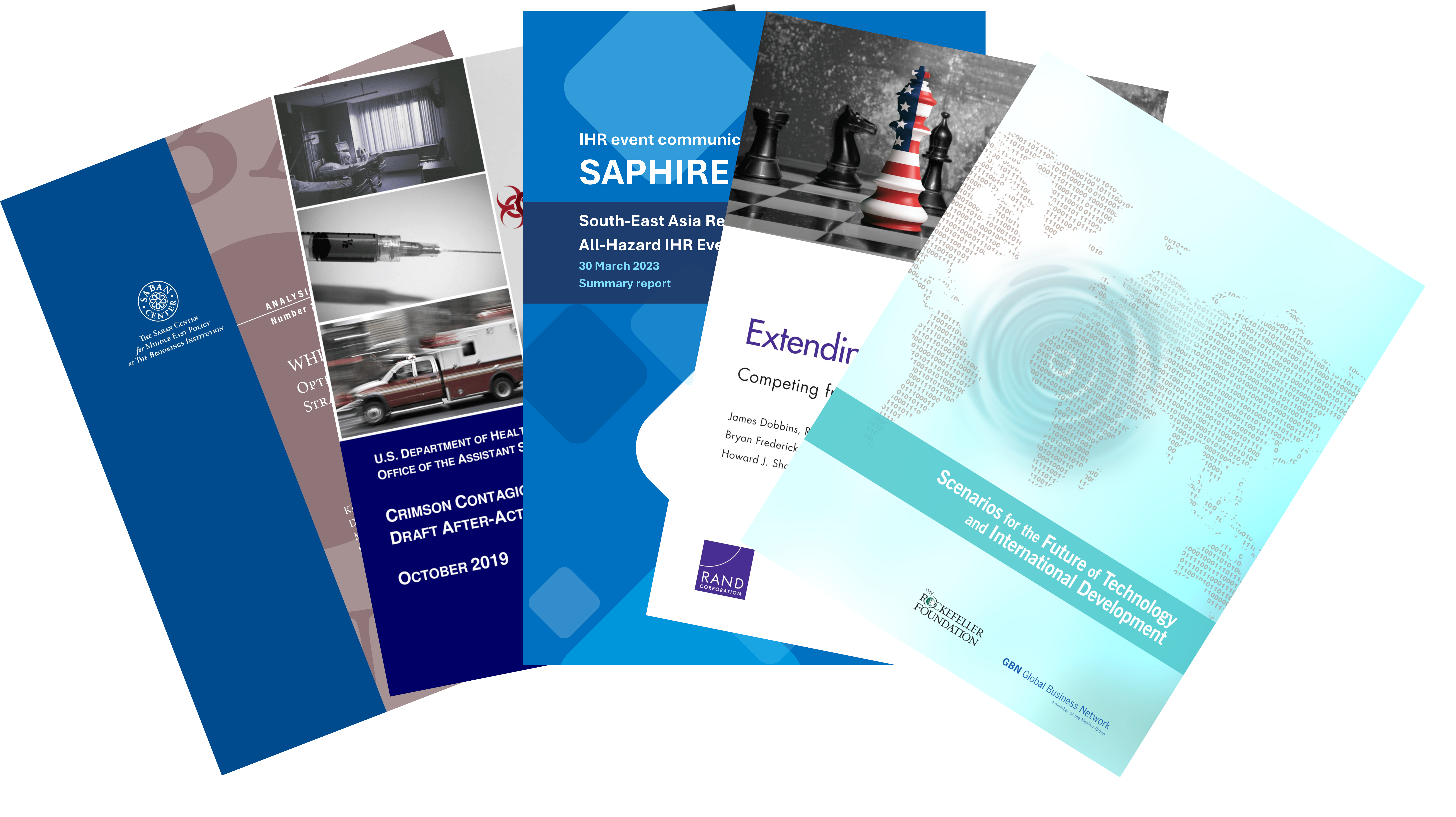 The 2010 Rockefeller Foundation report "Scenarios for the Future of Technology and International Development" introduced four distinct governance simulations: Lock Step, Clever Together, Hack Attack, and Smart Scramble. These were framed publicly as foresight exercises but functionally served as modular templates for crisis management systems.